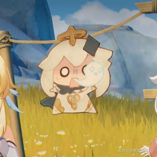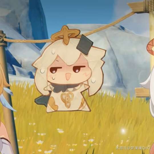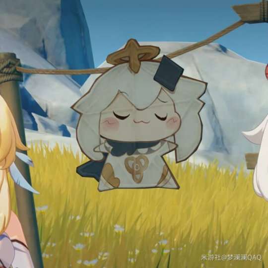 心虚的样子:「派蒙我才不是因为做错事被放上天的... 」