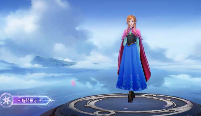 她华贵的蓝色裙摆,搭配点缀绒球的紫色披风。一头亚麻暖橘色麻花辫,如同冬日暖阳,为冰天雪地带来温暖,也慢慢温暖着人心。