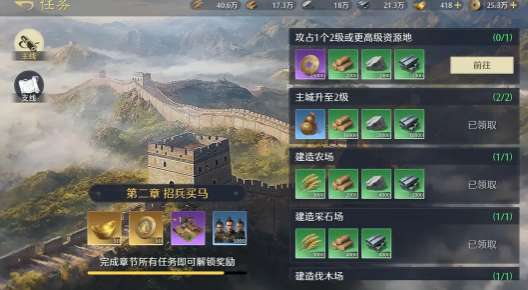 在确定好要选择洛州之后,那自然就可以开启前期的发育流程。在细节上不需要过于的纠结,应该紧跟着主线任务推进是核心。建造采石场,伐木场,还有主城升级,这才是关键,也是解锁后续功能的关键。同时千万别错过每日签到,7日助力,还有开疆拓土等活动,可以获得海量的粮草,还能积攒下点将券。开服7天积攒200以上的免费抽卡之后根本就不成问题,这对于想要拓展武将池还是很轻松的。