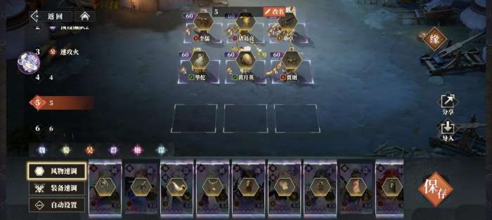 袁绍、朱然、张郃3名执旗官,加上孙权绝技一直拉条自己触发全体拉条,等于4个全体15%拉条效果。搭配袁绍的真伤输出、张郃的破防、黄月英的全体50%暴击、以及【乐师】职业和庇护套的增伤加成,能让我方在固定回合内行动更多轮次,打出更高伤害。面对部分无生存压力的BOSS战时,甚至还可以用乐进换掉庞统,组成更极端的4执旗官阵容。黄月英执旗队自动码(PVE)
