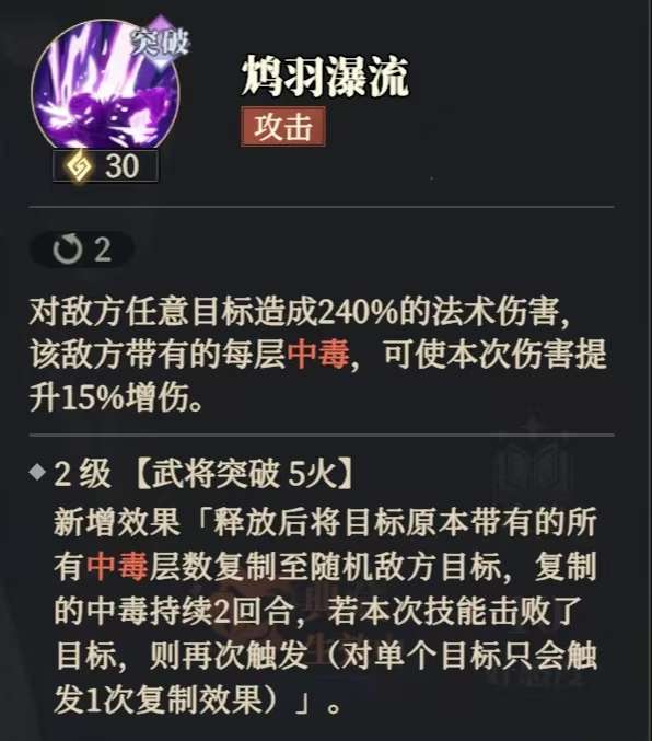 黄月英的【操纵】和毒队的中毒降增伤叠加后,对敌方C位的限制更大。同时黄月英的战意回复能大幅缓解毒队整体战意消耗过大的缺点,能让华佗和李儒绝技频率更高。全体暴击加成可以弥补【中毒】伤害较低的缺点,此前灼烧伤害比中毒高很多的主要原因之一就是周瑜和陆逊天命都有暴击,而毒队只有李儒有,贾诩没有暴击加成。