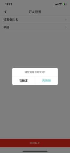 4、进入好友设置页面后,点击下方的删除好友,再点击确定即可成功删除好友。
