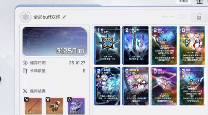 闪卡方面没有太多的局限,可以选择左二连击炮,还有左四。记忆碎片方面就会分成两套,如果是不玩暴击就可以直接选择受诅咒的尸体或者是赛斯的圣甲虫。玩暴击的玩家可以选择正义射线,还有执行者的道具。二费以上的卡牌暴击率起码会达到20%,暴击的伤害也会增加20%。所以就能够有效发挥循环爆发的作用,在长线战斗的过程中,大家还需要注重于它的暖机机制,通过多轮叠加,就可以逐步的提升伤害,就算面对着比较可怕的敌人,也无需担心。