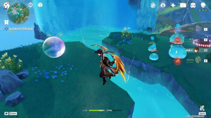 2.跟随水泡,跟随的途中会有很多路障,需要我们依靠风场等继续跟随,所以大家注意别掉落下去;