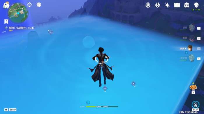 4.最后触碰水泡,进入水体,取回「冷凝部件」。