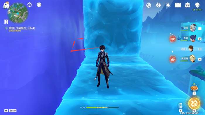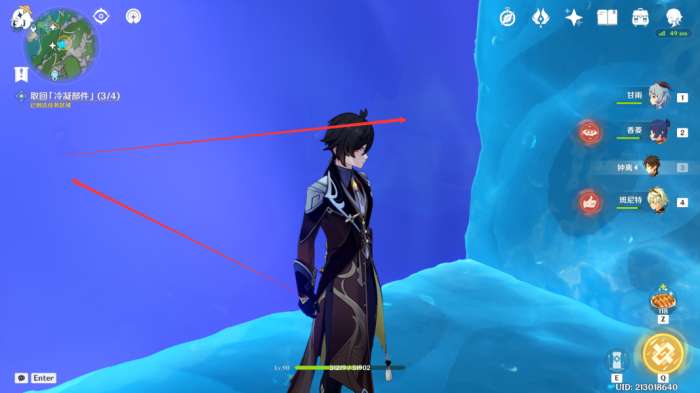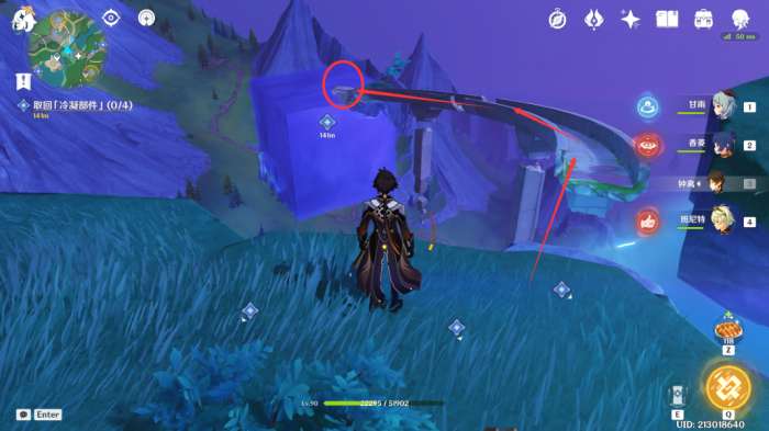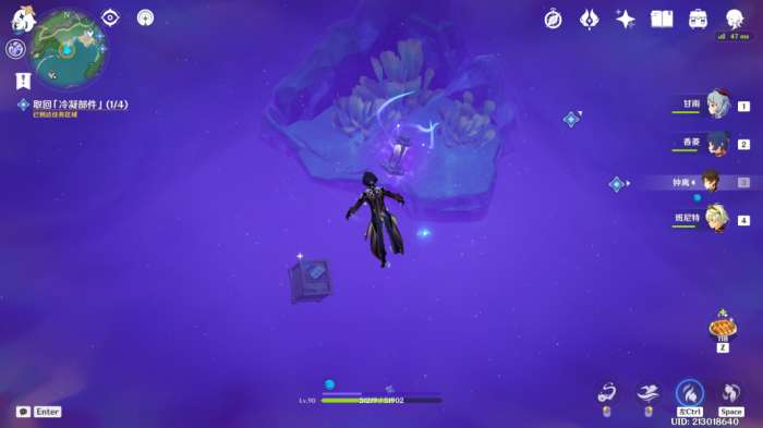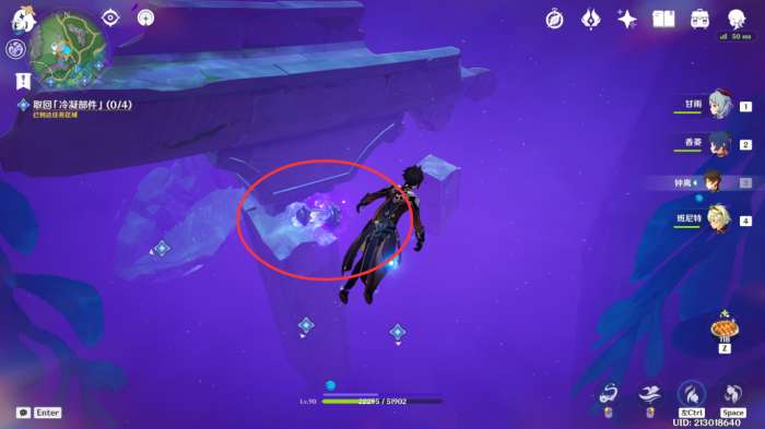 注意:在角色血条上方紫色条满之前,回收「冷凝部件」,不然会重置出生点。