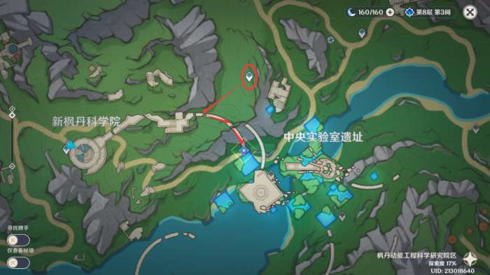 这里需要穿过多个水体到达目的地,所以我以折叠形式具体描述如何到达科学院废墟中心位置(若开了上空锚点的小伙伴可省略)。