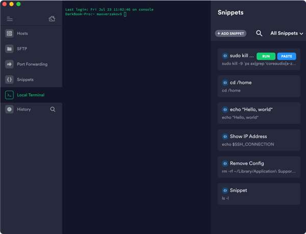 5、支持在不同终端使用 Snippets,将常用命令保存,实现长命令一键输入,提高写作效率。