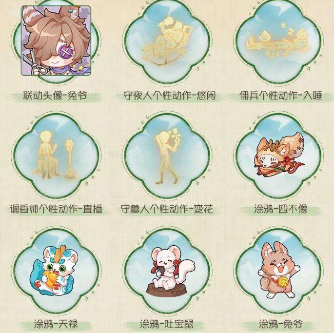 其中,特殊宝物具备双重用途:既可出售兑换金币,也可赠予联动角色(如兔爷、四不像、天禄、吐宝鼠等),触发专属剧情事件,呈现神兽群像的趣味日常互动;普通宝物则统一售出转化为金币,用于参与联动专属抽奖,奖池涵盖守墓人-兔爷奇珍时装、守墓人-究极胡萝卜奇珍随身物品、保安室主题家具、个人动作、头像框、线索以及碎片等多类道具。