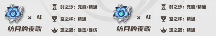 1.纺月的夜歌四件套:时之沙:可选择充能或精通属性。