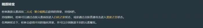 黑度之否:使用E+A释放造成342.1%倍率的伤害,并回能33点。此状态下开启大招会释放“黑度法·如星阴燃”,并召唤黑蚀之龙。