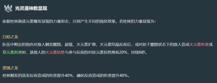 黑蚀之龙:杜林触发的蒸发反应伤害提升40%,融化反应伤害提升40%。