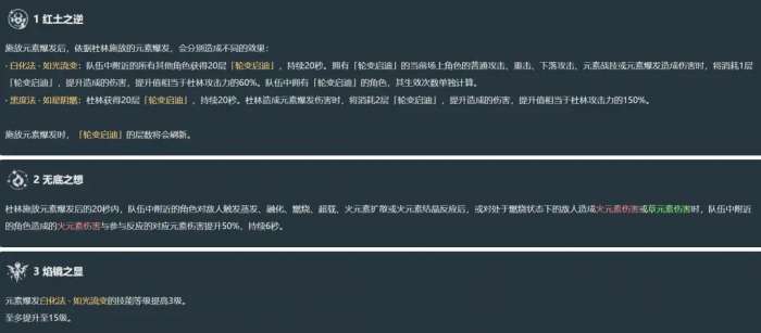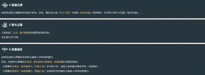 白焰之龙:全队对敌人触发火元素剧变反应后,6秒内降低20%火抗和对应元素抗性。