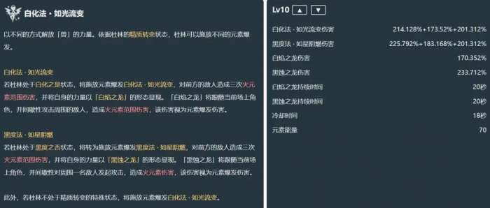 白化法·如光流变:使用E+E+Q,或直接按Q释放造成589%倍率的伤害,召唤白焰之龙。