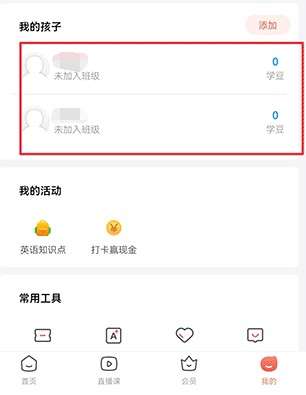 4、创建完成后,返回我的界面就可以看到已成功添加2个孩子;