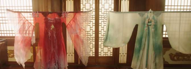 首先进入的是沐浴选衣服的场景,在这里大家可以选择再洗一会儿以及还是算了,如果选择再洗一会儿,那么就会直接对应结局五香妃,若是不进去写,就会进入到后续选衣服的过程。有两件衣服提供给大家,分别是红裙和绿裙,对应明艳和谪仙两种不同的风格。