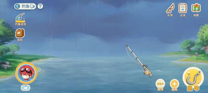 钓鱼功能在角色达到指定等级后自动解锁。玩家需先前往背包装配钓竿与对应鱼饵,随后前往地图中任意水域——包括湖泊、溪流、海岸及特殊天气区域等——点击岸边即可进入钓鱼界面。操作方式为单指触控:按住屏幕使浮标向右移动,松开则自动左移,需持续微调使浮标始终停留在动态提示条的有效区间内,直至鱼儿完全咬钩并完成收线动作。该过程考验反应节奏,但无失败惩罚,可无限重试。