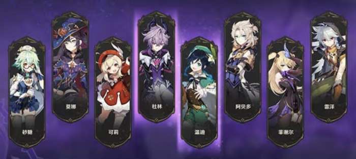 其中魔导角色一共有8位,分别是:砂糖、莫娜、可莉、杜林、温迪、阿贝多、菲谢尔、雷泽。