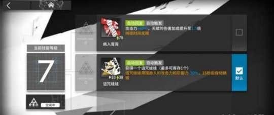 诅咒娃娃周围敌人的攻击力和防御力-20/25/30/50%,15秒后自动销毁