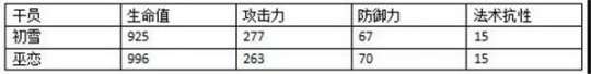 在干员的面板上,初雪和巫恋的属性差别不大,但初雪的攻击能力更强,而巫恋的生存能力略高。总的来说,两者在面板上实力相近,但由于辅助角色的特殊定位,无论如何还是无法对一些敌人造成伤害,而且脆弱的角色仍然很容易被击败。整体而言,这两个干员的特点比较独特,属于特殊类型的干员。