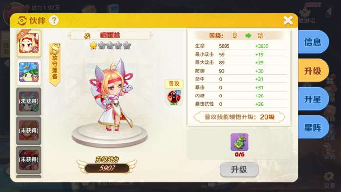 升星则需要对应的伙伴碎片。