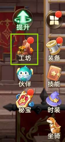 技能的获取需要通过【唤灵】的方式,在主界面左下角的任务面板中,找到【工坊】,就可以看到我们的唤灵界面啦!