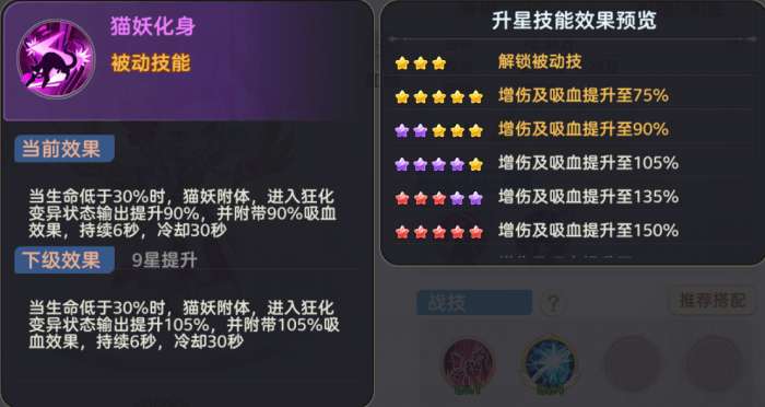 在【升星】一栏中,可以看到伙伴的技能栏。