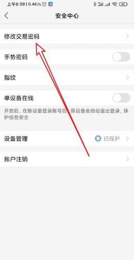 5、然后在打开的页面点击修改交易密码设置项。