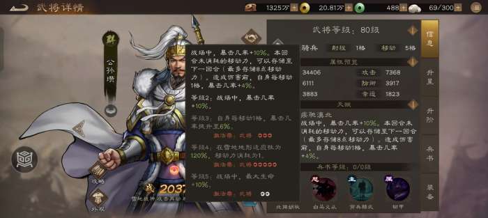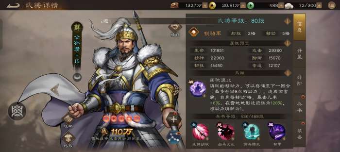 六星曹洪的技能就能加2点移动了,配合曹老板的加速,一个带冲刺技能的骑兵(徐晃关羽吕玲绮关银屏)是可以五回合内赶到目的地的!(如果你有十星公孙瓒那4回合就可以了,十星公孙瓒加六星曹洪加曹老板?三回合也不是不可以)