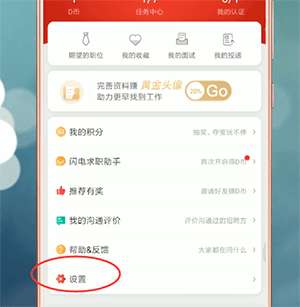 2、在我的页面中,找到并点击【设置】,进入设置页面