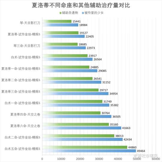 夏洛蒂不同命座和其他辅助治疗量对比