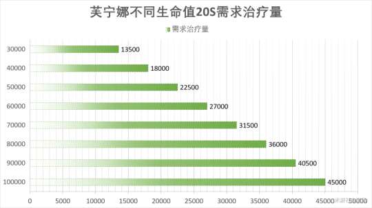 以上数据是20s内各个角色的治疗量。目前在游戏中,妮露是生命值最高的角色之一,有些玩家可以让她的生命值达到7万。夏洛蒂有三种不同的形态,其中某种可以一瞬间回复妮露的全部生命值。芙芙也是重要的辅助角色,她能够给全队提供12秒的加成效果,即使是没有经验的芙芙也能提供8秒的全队加成,这个效果比夜兰的50%加成时间更长。另外,白术角色的治疗量虽然比较高,但即使搭配精3碧落之珑,也只能治疗上限为6万5的生命值角色,而二命白术才能治疗上限为9万1的生命值角色。所以总的来说,夏洛蒂角色在游戏中有着极大的优势。