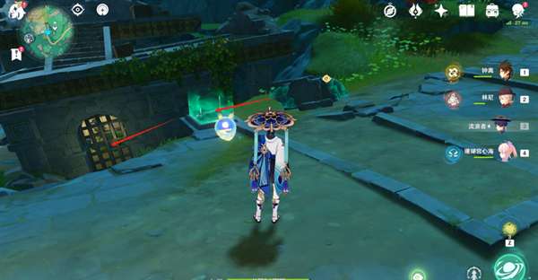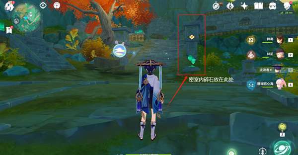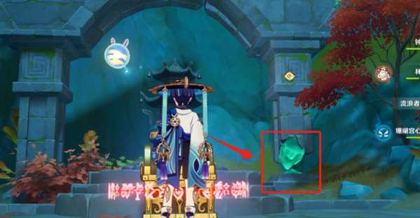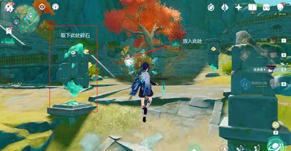 2、转身去对面获得第二块碎石,放置在宝箱旁的指定位置