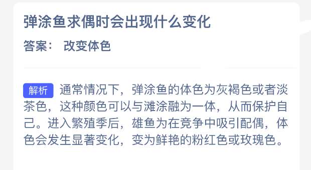 以上就是弹涂鱼求偶时会出现什么变化?神奇海洋今天答案最新2026年2月12日分享,更多相关攻略内容,请点击关注pk游戏网更新!