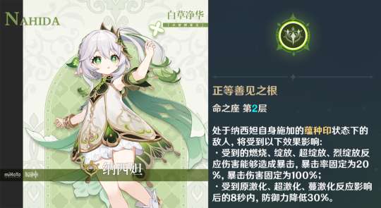 因此,纳西妲2命的性价比非常高,2命的纳西妲不但可以提升自己伤害,还可以让整个草系体系收益。
