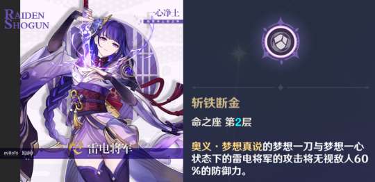 雷电将军的2命非常有名,可以说只要推荐命座,雷神2命一定逃不掉。虽然雷神目前0命的统治力不比从前,但雷神2命仍然是性价比极高的一个命座。