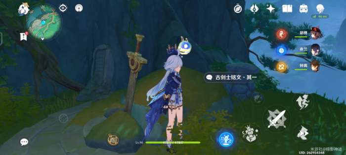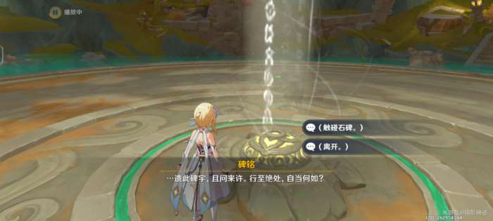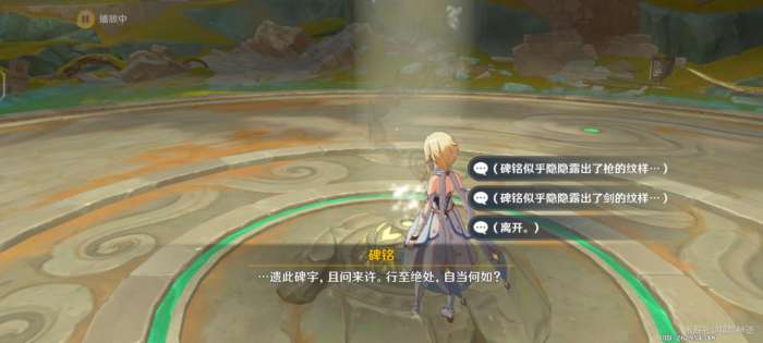 来到最终地点后,我们过完剧情后会自动解锁成就『至上的秘笈』,我们和古剑士铭文交互后会获得一个摩拉石堆