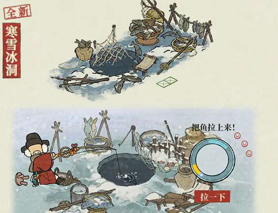 开放的全新区域——冰湖,将承载多项限定玩法。其中,“冰钓”作为重点小游戏正式上线:玩家需先建造“饵料小屋”,消耗基础材料即可产出鱼饵原料;随后建造“寒雪冰洞”,在完成建筑并备齐鱼饵后,即可开启冰面垂钓。所获鱼类除可出售换取资源外,还将自动录入图鉴系统;集齐全部图鉴后,可兑换储鱼冰屋、大鱼祈愿像、冰鱼雕像等稀有奖励。