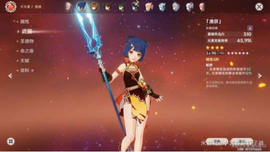 武器中:五星的薙刀我想大家肯定是留给雷电将军的,而四星里最适合香菱的就是鱼获,而这个也需要开启稻妻后钓鱼完成。