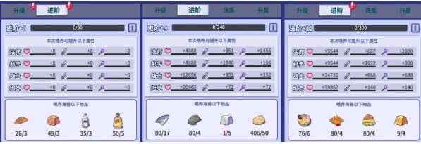 海兽培育的升级与进阶是对123号海兽位置的培养,而不是对上阵海兽的培育,所以前期不需要想着攒着材料等高级海兽再进行培育。