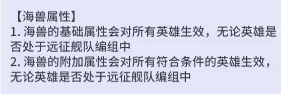 海兽系统的每只海兽所拥有的基础&附加属性都能给所有部队相应加成,而且这个属性是在任何战斗场景都生效的,比如闯关,世界海战,竞技场等等,所有地方海兽的属性都生效。