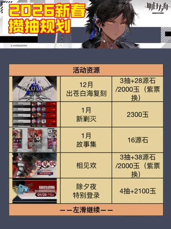 软件提交 专题合集 热门手游明日方舟2026新春限定池怎么抽,本文为大家详细介绍了2026年新春限定池的抽卡资源攒取规划,包括日常、周常和各种活动的抽卡与合成玉获取方式,帮助博士们高效准备限定角色。