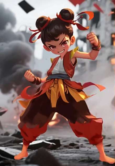 变化三头六臂,借用法宝大幅提升攻击力,减伤率暴击倍率,发射速率,交替使用斩妖剑,砍妖刀向周围最近的敌人攻击,造成大面积伤害,所有攻击附带三昧真火。