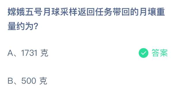 以上就是嫦娥五号月球采样返回任务带回的月壤重量约为?支付宝蚂蚁庄园2026年4月24日答案最新,更多相关攻略,请关注pk游戏网更新!