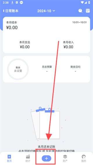 1、首先进入一羽记账app,访问下方的【+】界面。
