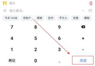 3、输入消费或收入金额,最后点击右下角的【完成】即可。