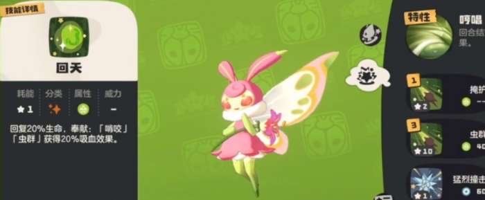 草衣虫拥有一个名为“哼唱”的专属特性,每回合结束时有一定概率触发“奉献”效果,这一机制能有效提升其续航能力和战场持久度。由于草衣虫本身具备较高的生命值,适合担任团队中的前排担当,能够吸收大量伤害,保护后排输出。虽然它的攻击速度偏低,但配合控制类技能,可以在关键时刻干扰对手节奏。因此,草衣虫在阵容中扮演着攻守兼备的角色,既能抗压又能反制,是多种战术体系中不可或缺的一员。