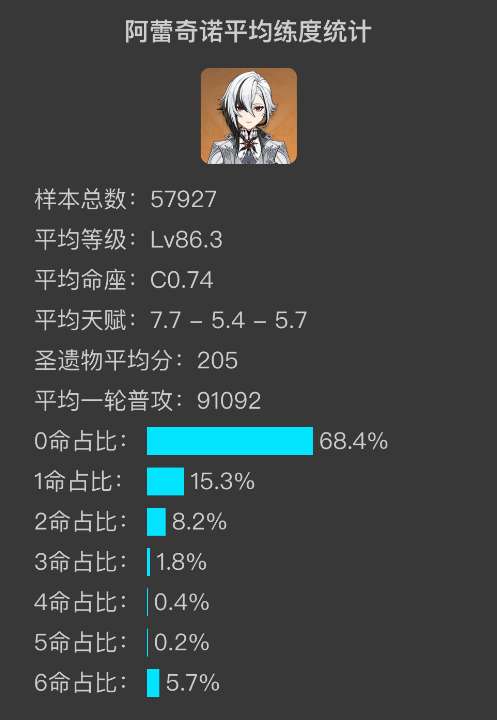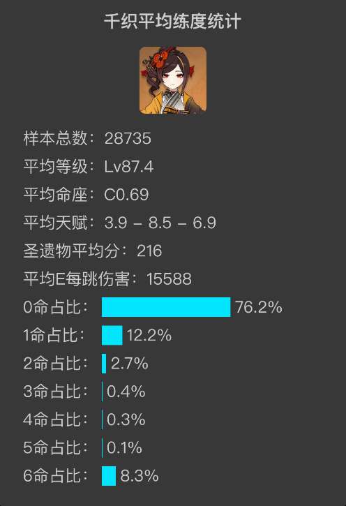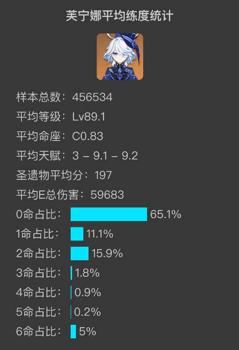 角色的平均命座 = 该角色的命座总数/持有该角色玩家的总数。