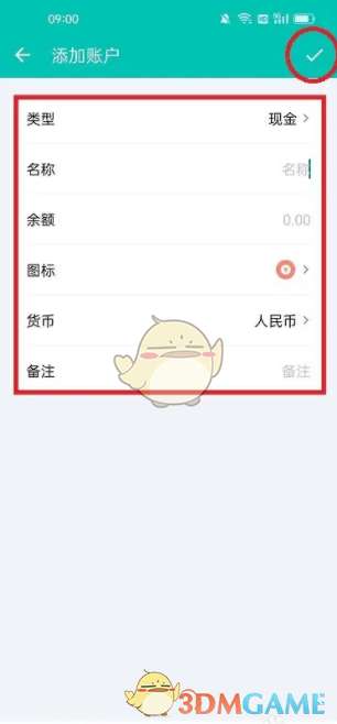 4、页面跳转后,首先填写账户信息,然后点击右上角的“√”,如图
