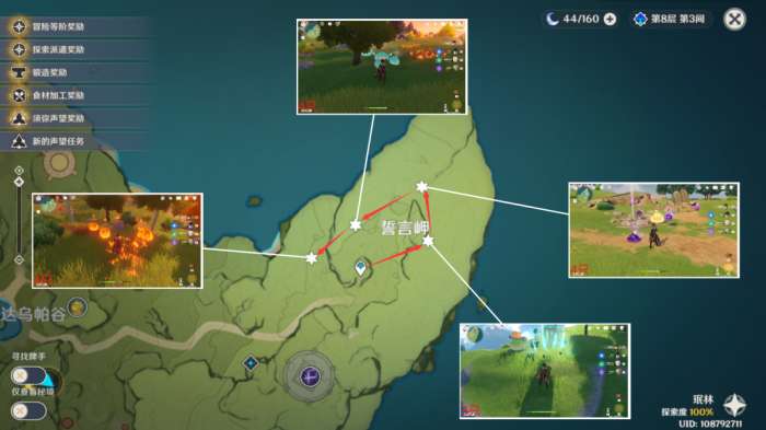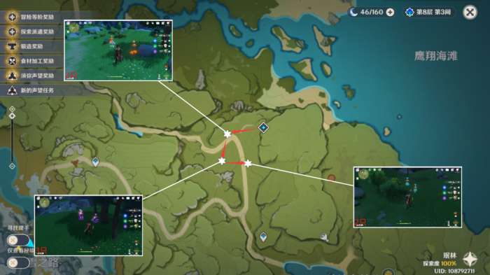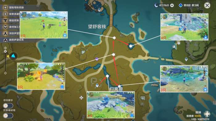 采集方面:有草神的还可以带草神,根据地区选择能够显示周围特产的角色